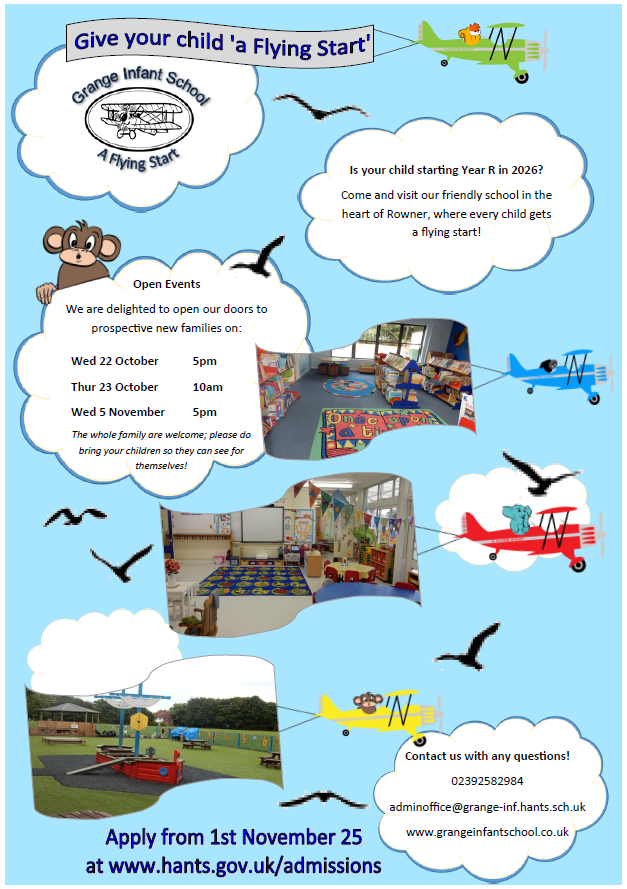 The information shared at our 2025 new entrants meeting is available here: A Flying Start at Grange Infant School 7.7.25